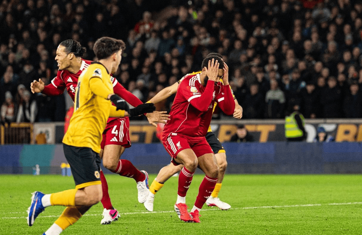 这场对狼队的比赛,完美复刻了利物浦本赛季的所有顽疾。全场控球率接近7成,狂轰19脚射门,2次击中门框,数据全面碾压。可狼队直到打进第一粒进球前,甚至没有完成一脚射门,就靠着两次反击加一次折射,硬生生拿走3分。